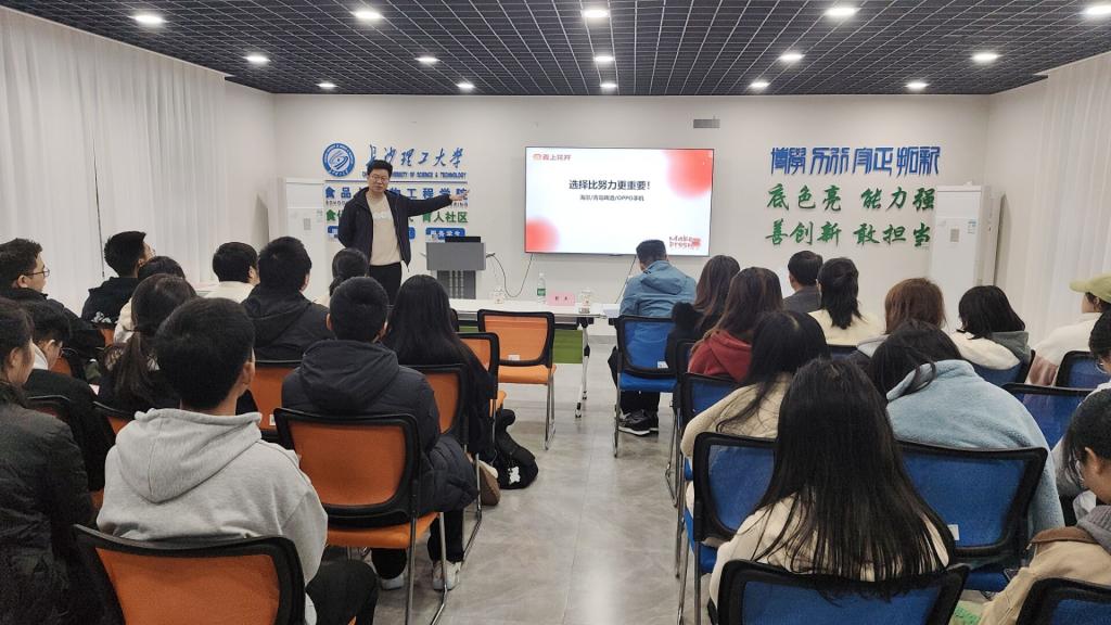 为搭建食品学子创业就业精准交流平台,帮助学子明晰职业路径、夯实就业创业基础,11月18日下午,食品与生物工程学院创业就业大讲坛在云塘校区敏三“一站式”学生社区举办。本次活动邀请04级生物工程校友、麦上花开总经理彭杰作为分享嘉宾,食品学院院长王建辉出席,学院副院长赵保强主持,40余名学生参与。