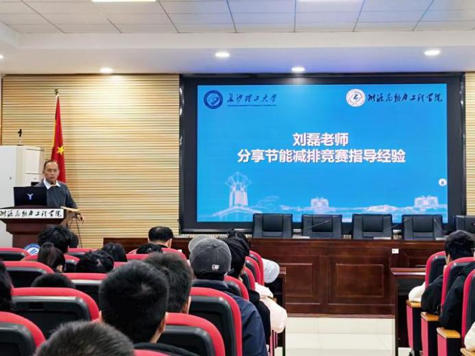 活动伊始,刘瑞聚焦参赛规则、参赛报名、材料提交等,就第十九届节能减排社会实践与科技竞赛&第四届湖南省节能减排社会实践与科技竞赛校内选拔赛进行详细解读,帮助大家进一步了解节能减排竞赛。随后,刘磊和学生代表朱小雨从竞赛目的、选题、创新点、材料准备、团队组建等方面分享节能减排竞赛经验;刘瑞和学生代表陈宇围绕2025年挑战杯“揭榜挂帅”专项赛的出题规则、选题方向、揭榜机制、评分维度等方面分享挑战杯竞赛经验;李威和学生代表黄灿从模型构建、技术路线、团队协作等方面分享BIM毕业设计创新竞赛经验;学生团队代表杨菲凡从作品选题、调研方法、材料撰写等方面分享可再生能源竞赛(社会实践类)的经验。陈颖在总结中表示,近年来,学院学生参与学科竞赛氛围愈发浓厚,获奖数量逐年上升,希望同学们正确认识参加竞赛的价值和意义,注重个人能力的全方位锻造。