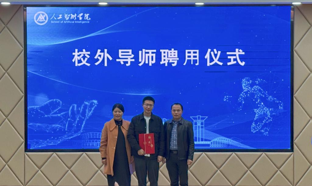 会上举行了校外导师聘任仪式,李琳与范必双共同为罗敏颁发了校外导师聘书。范必双鼓励同学们创业逐梦、博学专精,主动拥抱AI技术、拥抱AI时代,积极在各类竞赛中锻炼自学能力、解决问题能力,培养创新思维。