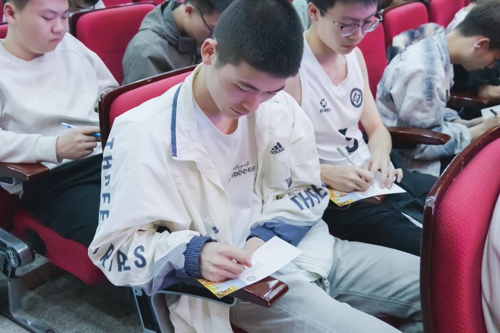 大会特别设置了“写给半年后的自己”明信片环节。全体同学在明信片上写下对未来的期许、学业目标与成长承诺,由学院统一封存,待半年后的年级大会启封返还,以充满仪式感的形式,引导同学们锚定方向、笃行不怠,用实际行动兑现对自己的承诺。