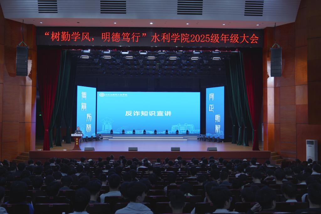 4月10日晚,水利学院在云塘校区大会堂召开“树勤学风,明德笃行”年级大会。学院党委副书记银波,辅导员王正博、王祎出席会议,2025级全体本科生参会。