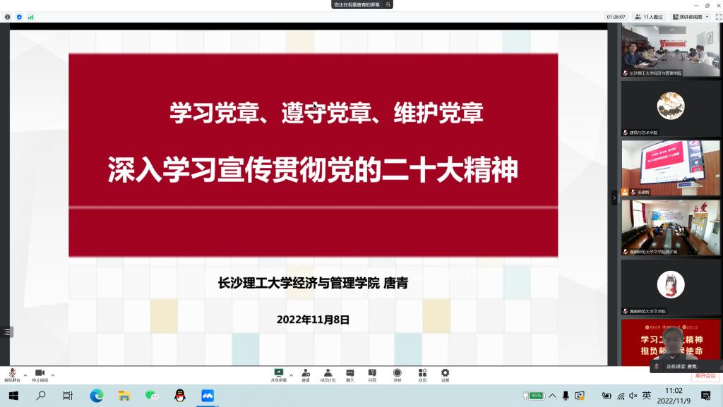 11月9日上午十时,MG冰球突破官网经济与管理学院与中南大学建筑与艺术学院、机电工程学院以及湖南师范大学文学院的辅导员们云相聚,举行“学习党的二十大精神·担负新征程使命”的联合学习交流会。