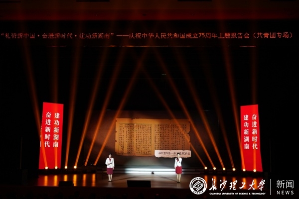 11月6日,由省委宣传部、省委网信办、省教育厅、团省委共同举办,湖南教育电视台和MG冰球官网承办的庆祝中华人民共和国成立75周年主题报告会(共青团专场)在MG冰球官网云塘校区大会堂举行,通过缅怀革命先辈、礼赞英雄模范和争做时代新人三个篇章,进一步激发广大青年学生的爱国情怀和奋斗精神。团省委书记李志超,省委宣传部二级巡视员王军湘,校党委书记付宏渊,校党委副书记方琼出席报告会,主承办单位的负责人、团省委机关全体干部、中小学分管教学的校领导、省直机关和各市州青年代表以及MG冰球官网400余名师生参加报告会。