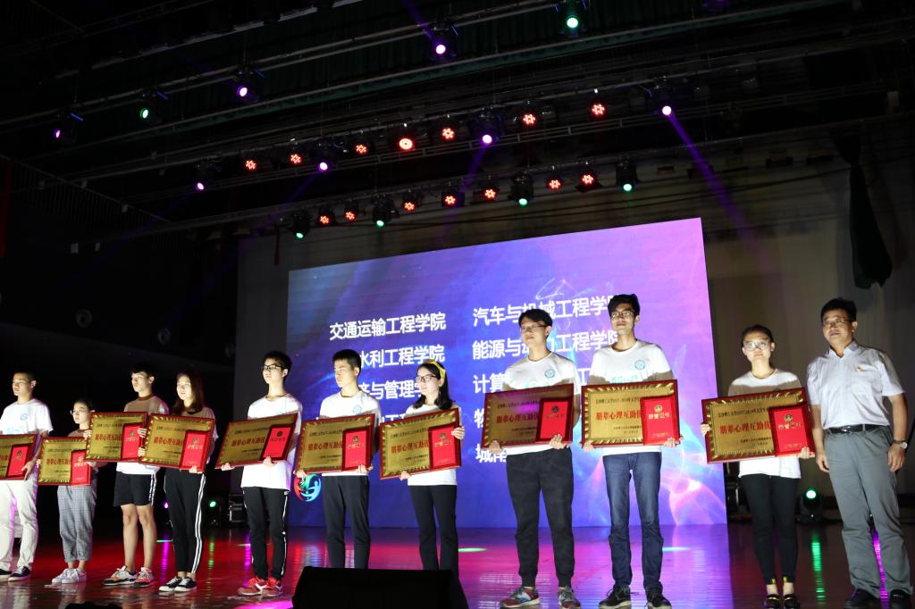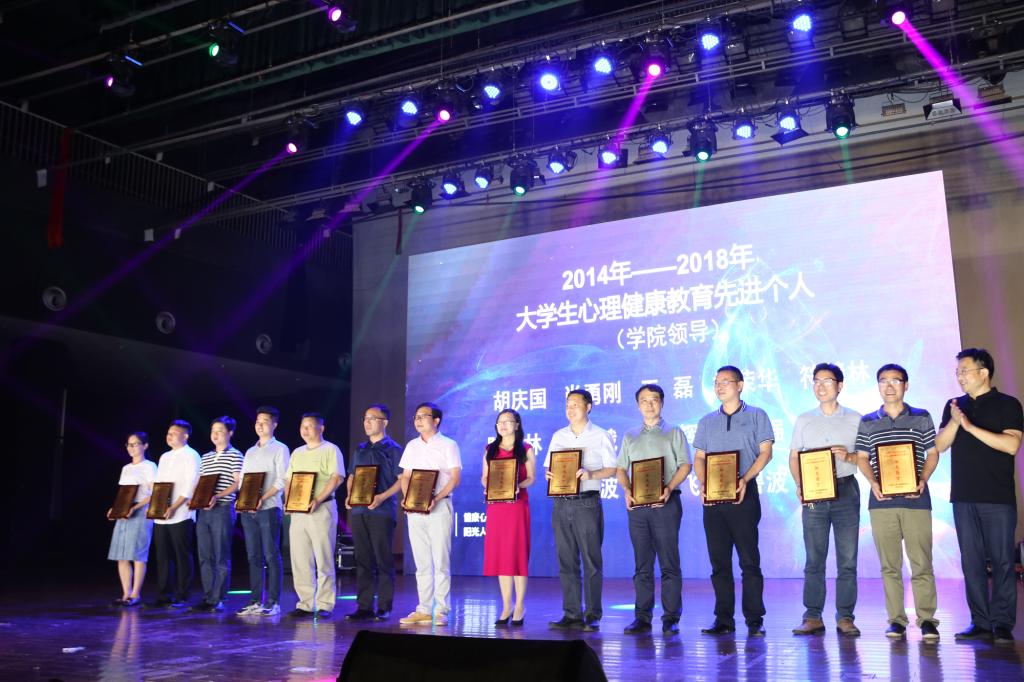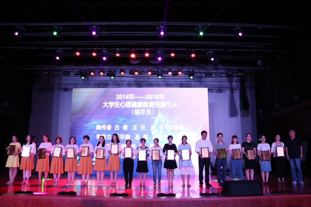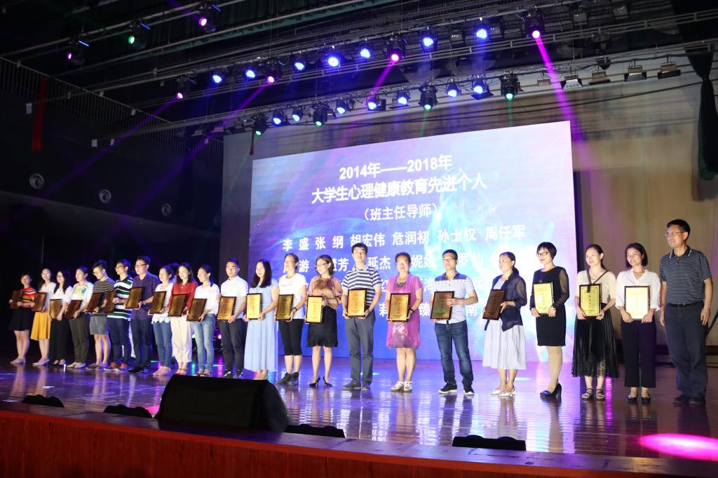晚会上,授予10个学院“2014-2018年MG冰球突破官网大学生心理健康教育工作优秀集体”称号;授予13名二级学院领导、24名班主任和研究生导师、20名辅导员“2014-2018年MG冰球突破官网大学生心理健康教育工作先进个人”称号;同时还授予10个学院的朋辈心理互助组织“阳光团队”称号,107名朋辈心理互助员“阳光朋辈”称号。