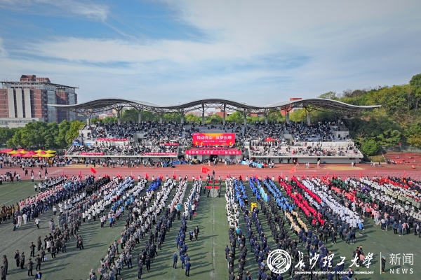 大型团体操表演《大国工匠,长理担当》为整场运动会拉开帷幕。近千名长理学子身着不同颜色的服装,通过队形变化组成“CSUST”“大国工匠”等图案深情表达爱国情怀和匠心报国之志,赢得了现场观众的阵阵喝彩。