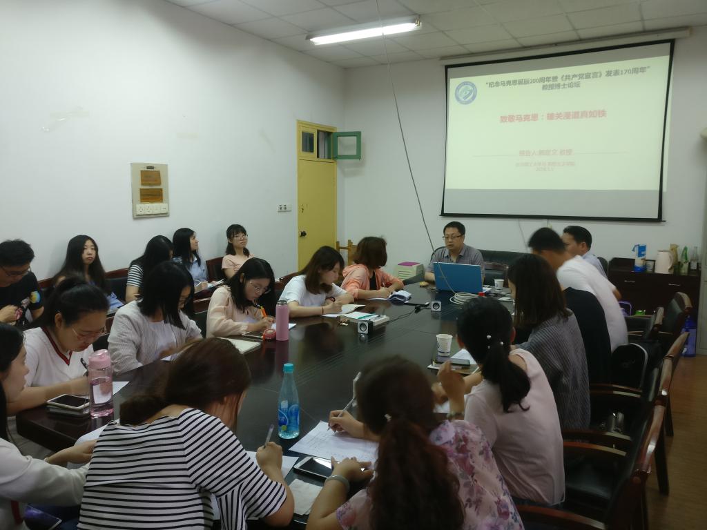 5月5日上午,为了纪念马克思诞辰200周年暨《共产党宣言》发表170周年,MG冰球突破官网人文社科处处长卿定文教授在金盆岭校区4教503室为马克思主义学院师生带来了一场题为“雄关漫道真如铁:致敬马克思”的精彩学术讲座,全院师生四十余人参加,讲座由副院长梁建新主持。