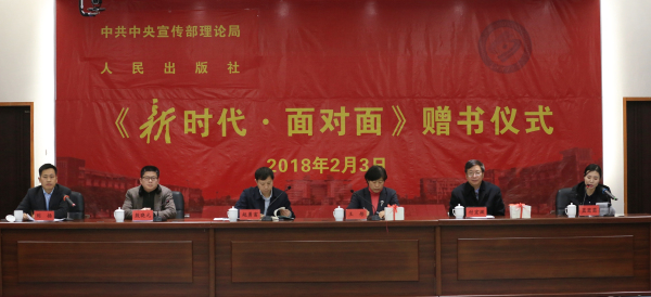 赠书仪式上,中宣部理论局副局长赵勇富、研究处副处长候军,人民出版社纪委书记王彤发表了讲话,介绍了撰写出版情况,提出了希望要求。赵勇富指出,《新时代面对面》作为“理论热点面对面”系列丛书的最新读本,主题鲜明,内容针对性强,该书以习近平新时代中国特色社会主义思想为指导,关注的问题紧密联系新时代中国特色社会主义生动实践,紧密联系干部群众思想实际,观点权威准确,语言通俗易懂,文风清新简洁,文字、图片、音频呈现出立体结构,使读本既增加了可读性,也体现了时代性,充满了凝聚社会共识、提升理论自信的智慧。他希望学校把读本的学习向深入推进,全面准确理解党的十九大精神,切实把思想和行动统一到党中央决策部署上来。