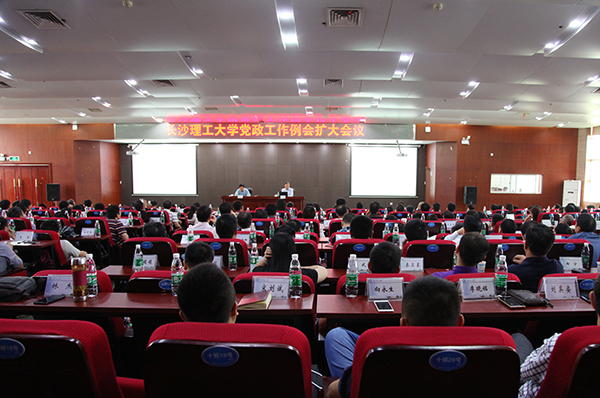 6月1日下午,学校在国际交流中心召开党政工作例会扩大会议,全校副处职以上干部和全体辅导员参加会议。校党委书记付宏渊主持会议。
