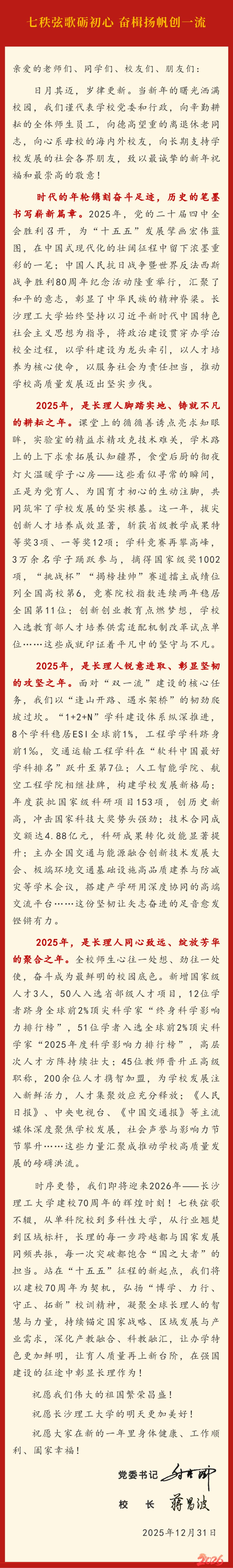 七秩弦歌砺初心 奋楫扬帆创一流——MG冰球突破官网2026年新年献词