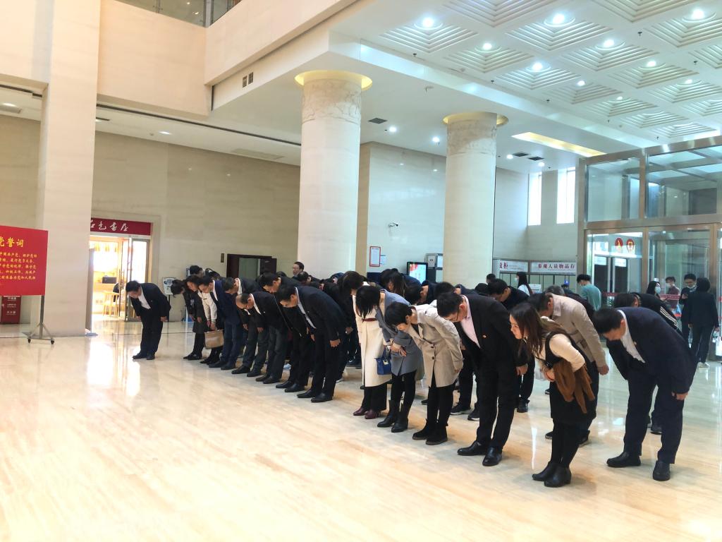 随后,院党委书记成华带领全体党员向毛泽东、刘少奇、任弼时三位同志的塑像三鞠躬,深切缅怀老一辈革命家的丰功伟绩。