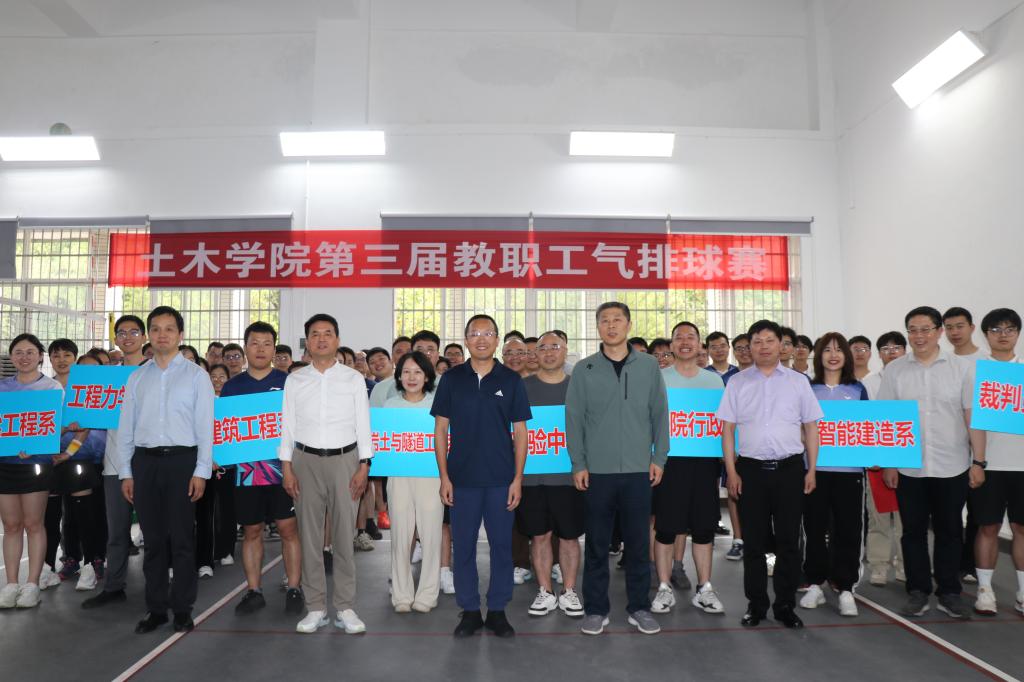 为丰富教职工文化生活,增强团队凝聚力,4月22日下午,土木学院第三届教职工气排球赛开幕式在云塘校区工科二号楼气排球场举行。全体在家院领导和7支队伍等近百名教职工参加。