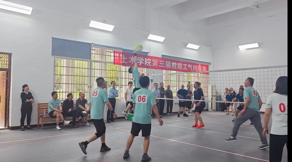 院党委书记肖寒致开幕辞。他指出,气排球运动深受学院教职工喜爱,举办赛事既为检验平时锻炼成效,更为进一步提升大家参与锻炼的积极性,让“无运动不土木”理念更加深入人心。他希望教职工们在切磋技艺中增进情谊,在挥洒汗水中收获快乐,以更饱满的热情、更充足的干劲为学院高质量发展注入活力。