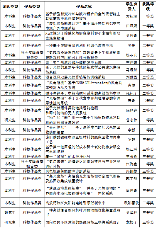 决赛分为现场答辩、作品展示、专家提问与评分等环节。由肖俊兵老师指导的作品《基于新型相变冷却与液冷耦合的全气候智能主动式高效电池热管理装置》、陈维老师指导的作品《“废铝焕新能流四方”基于循环废铝的铝空气电池户外电源系统》、田红老师指导的作品《Ni改性分子筛催化热解废塑料和小麦秸秆制取富烃生物油》获得全国一等奖。