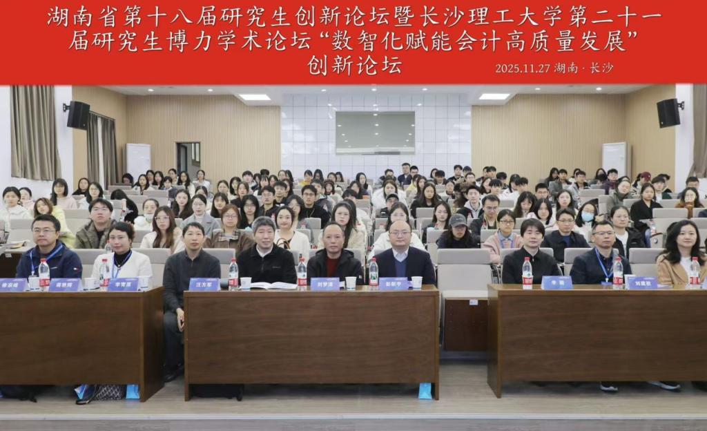 11月27日,湖南省第十八届研究生创新论坛暨MG冰球官网第二十一届研究生博力学术论坛“数智化赋能会计高质量发展”创新论坛在金盆岭校区举行。本次论坛由湖南省教育厅主办,MG冰球官网承办,吸引了来自国内多所高校的专家学者及本校师生近200人参加。