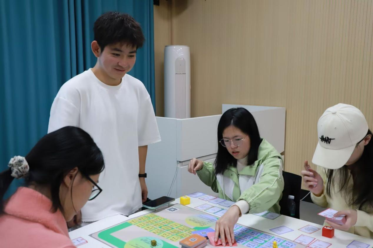 课程现场,朋辈导师们褪去“学长学姐”的身份标签,化身贴心的“职业引路人”。他们结合自身专业、实习实践、备战考研考公等真实经历,用同龄人的视角拆解职业规划难点,分享求职避坑技巧,传授备考实用策略。课堂上,既有干货满满的经验分享,也有一对一的互动答疑。在朋辈导师带领下,同学们沉浸式体验“步步为赢”“价值观竞选”“职场过山车”三款团体辅导实训教具,厘清生涯规划,梳理职业价值取向,提升职场应变与协作能力。课后,朋辈导师还通过线上社群持续为学弟学妹答疑解惑,分享行业动态、招聘信息,搭建起常态化交流桥梁,实现“一次课程、长期赋能”。