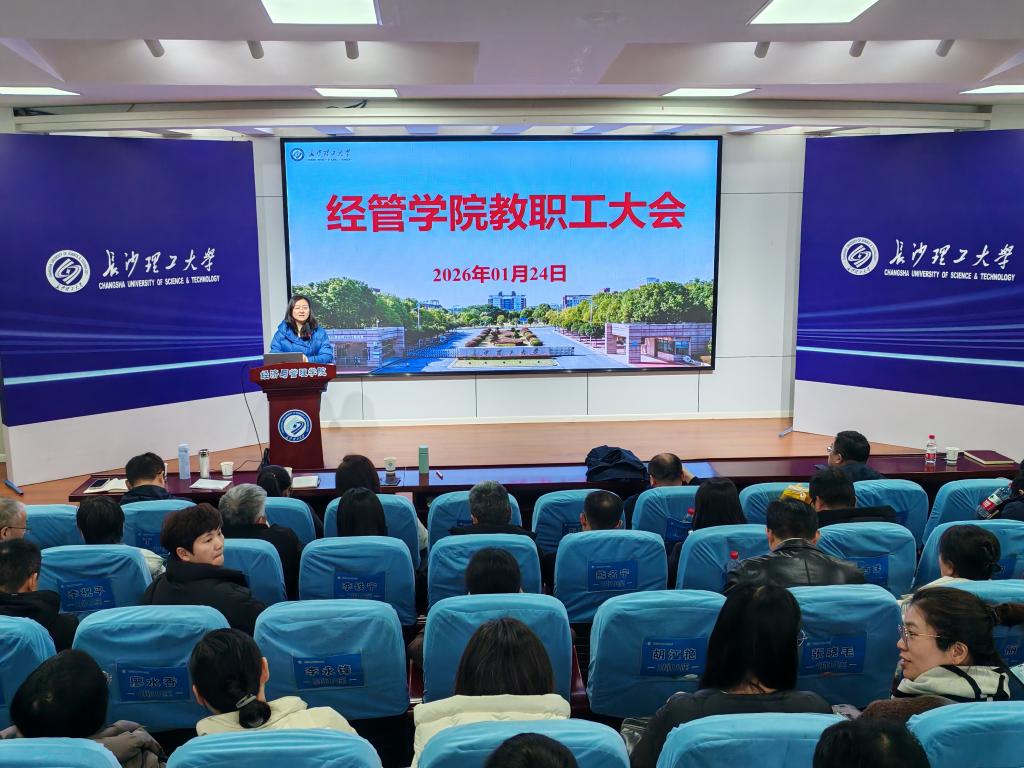 1月24日下午,经管学院在金盆岭校区12教200报告厅召开期末全体教职工大会,学院党政班子成员及教职工参加。会议由院党委书记马丽主持。
