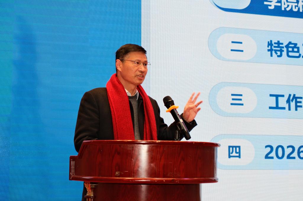 会议伊始,院长樊绍胜作2025年度工作报告,报告主题为“团结奋进!服务国家人工智能战略,助力学校一流学科建设”,全面回顾了学院在学科建设、教学科研、人才培养等方面取得的成绩,深入分析了学院发展面临的机遇与挑战,并对2026年重点工作作出部署。樊绍胜还对绩效分配方案进行了解读。