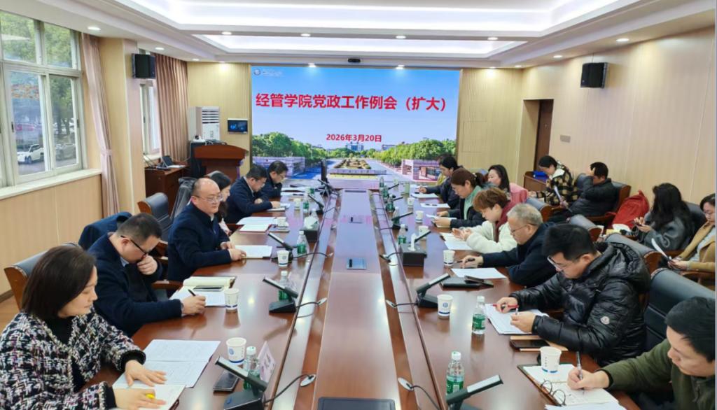 3月20日,经管学院召开2026年春季学期党政工作例会扩大会议,研究部署2026年各项重点工作,凝聚共识,明确奋进方向。院领导班子成员、各系正副主任、教工党支部书记等行政部门负责人参加会议。