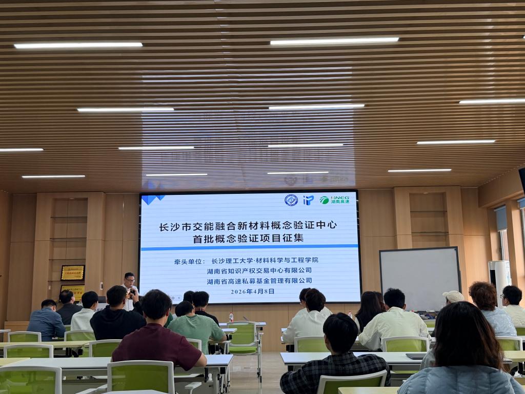 贺浩介绍了长沙市交能融合新材料科技成果转化概念验证中心。该中心由MG冰球官网、湖南省知识产权交易中心、湖南高速私募基金三方共建,首批拟征集20—30个项目。
