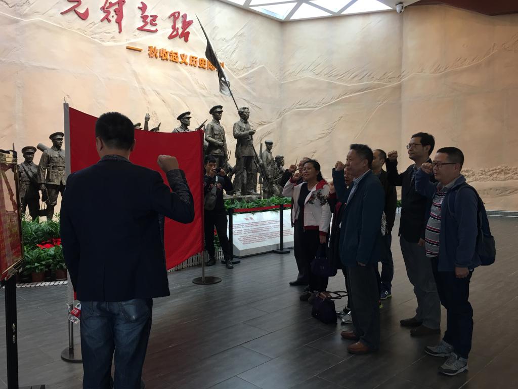 秋收起义文家市会师,是以毛泽东为代表的中国共产党人把马克思主义与中国革命实际相结合,探索农村包围城市革命道路的开端,具有划时代的伟大意义。在文家市会师纪念馆,支部党员在鲜红的党旗下庄严举起右手,重温入党誓词,以此牢记作为共产党员的职责和义务,更加坚定理想信仰。下午,支部党员怀着崇敬的心情参观了胡耀邦故居。胡耀邦同志把毕生精力献给了党和人民的伟大事业,他那种始终如一地为党和人民的事业呕心沥血的精神深沉感染着我们。