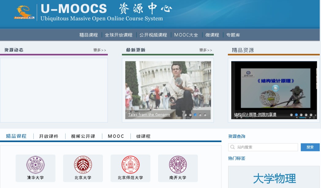 主要包括校内、校外两部分,涵盖精品课程,视频公开课,教学课件,教学视频和动画等多种资源类型,面向师生完全开放。