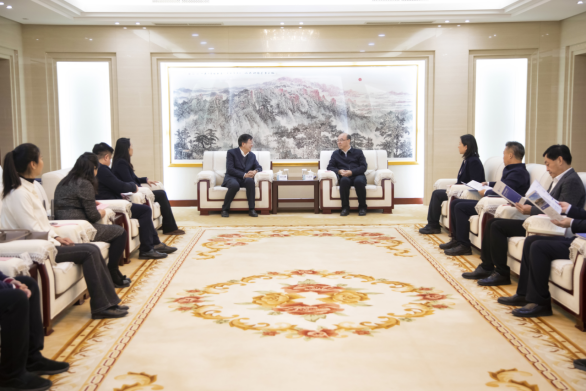 调研期间,付宏渊一行还走访了校友企业山东黄金建设集团,与89级校友、集团党委书记、董事长王长国进行了座谈。王长国回顾了在母校的求学经历,衷心感谢母校的培养与关怀,希望进一步在技术创新、成果转化、大学生高质量就业等方面与母校深化合作。付宏渊对校友多年来在行业取得的成就表示祝贺,希望双方以此次交流为新的契机,加强在学生实习实训、科技创新等方面的合作,更有效地对接国家和社会需求,更好地服务国家战略和地方经济发展。