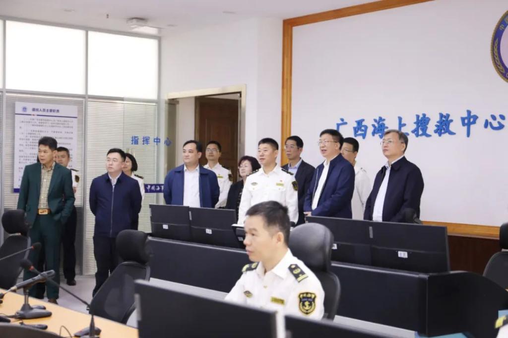 在广西海事局,付宏渊一行参观了广西海上搜救中心和海事指挥中心,深入了解了涉水监管业务。