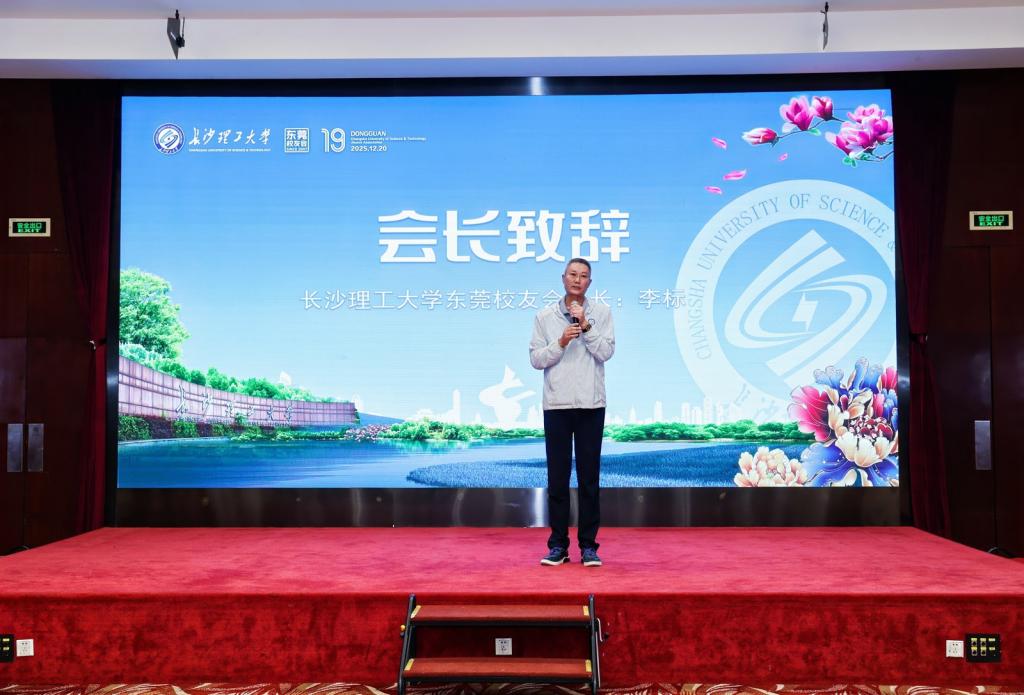 东莞校友会会长李标欢迎辞。他对出席本次年会活动的嘉宾和校友们表示热烈欢迎,并回顾了过去一年校友会在活动组织、平台建设等方面的工作成效。他表示,未来东莞校友会将持续发挥纽带作用,为校友搭建更广阔的互动平台,并呼吁广大校友继续加强联系积极参与校友会活动,在紧密的联系中挖掘合作机遇,携手共创发展新篇。