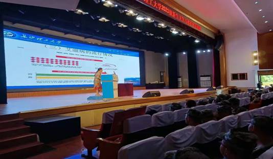 2021年9月9日—9月18日MG冰球突破官网校医院联合学工部利用军训期间新生入学教育的契机,开展了一共十场青春健康讲座。讲座在金盆岭校区五教学楼礼堂举行,由学工部武装部席军主任,校医院健康教育工作室负责人雷鹂,主持,各学院辅导老师及教官组织。由国家高校防艾专家组成员雷鹂老师,长沙市120急救中心吴柱主任,湖南省卫健委健康教育中心青彩志愿者服务总队负责人向愈韩主讲。主讲内容包括急救知识培训,传染病防治知识,性病艾滋病防治知识等。