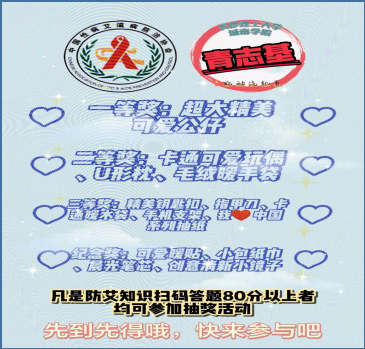 1.在活动现场张贴答题小程序二维码以及设立抽奖箱,由志愿者引导同学们参与防艾知识答题,凡是80分以上者均参加抽奖活动。