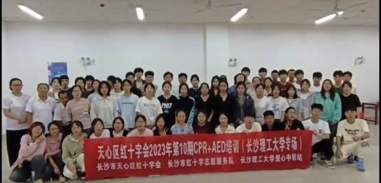 为培养大学生社会责任感,提高自救互救能力,掌握基本急救知识和技能,倡导“急救为人人,人人会急救”的理念。2023年9月24日,MG冰球突破官网后勤服务保障中心卫健办联合天心区红十字会组织开展了心肺复苏术(CPR)和自动体外除颤器(AED)急救知识与技能培训,培训由校医院副院长、卫健办副主任雷鹂主持,“爱心中转站”社团骨干和积极报名参与的志愿者合计60余名学生参与了培训。