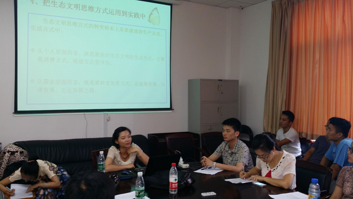 6月29日下午,MG冰球突破官网马克思主义学院2015年第4期“教授博士论坛”在金盆岭校区4教503教室举行。钟芙蓉博士以“转变思维方式,推进生态文明”为主题作了精彩的专题报告。本次论坛由张明海副教授主持,马院2014级研究生参加了此次论坛。