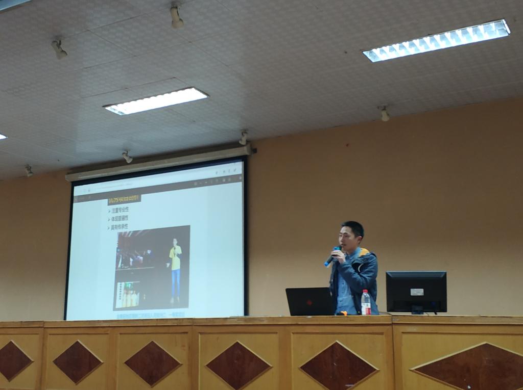 最后做分享的是王建新,他带领过学院团队获得校研究生暑期专业实践二等奖。王建新同学给研究生们带来了他的暑期专业实践总结报告,他的团队主要立足于“互联网+”和“精准扶贫”,对道县的特色产品进行推广。王同学用诙谐的语言向大家介绍了他们团队的实践过程,并分享了他的几点经验:第一,在专业实践中应充分了解当地情况,有针对性地进行前期调查;第二,在实践过程中要注重宣传,可以在活动前就与当地政府取得联系,得到社会公众的支持。