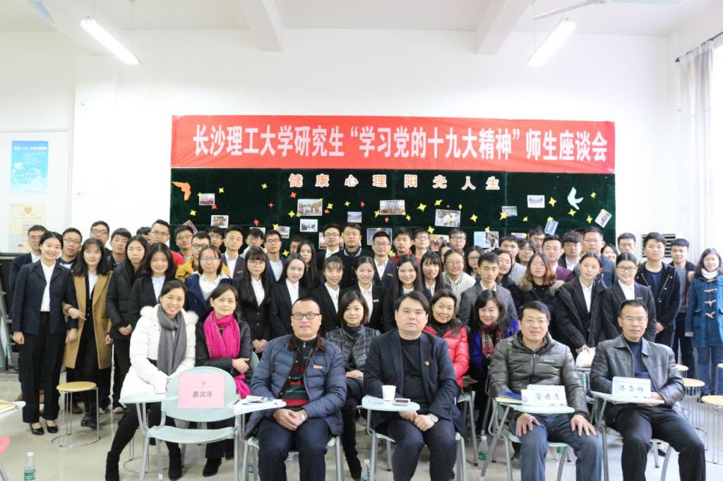 为深入学习、准确把握、认真贯彻好十九大精神,用习近平新时代中国特色社会主义思想指引研究生学习科研,加快推进MG冰球突破官网“百强”、“双一流”建设。12月20日,MG冰球突破官网在云塘校区举行了以“贯彻十九大精神,提升学术科研能力,为长理‘双一流’和‘百强’建设出力”为主题的研究生座谈会。MG冰球突破官网马克思主义学院党委书记、博士生导师易显飞教授受邀为在场师生进行了主题为“学习十九大精神,为长理建设‘双一流’,实现‘百强梦’不懈奋斗”十九大宣讲,研究生院院长管德清、副院长湛雪辉、副院长兼研工部部长刘亚辉以及研究生院全体老师、校研会干部、各培养学院优秀研究生代表共计八十余人参与了学习及交流。