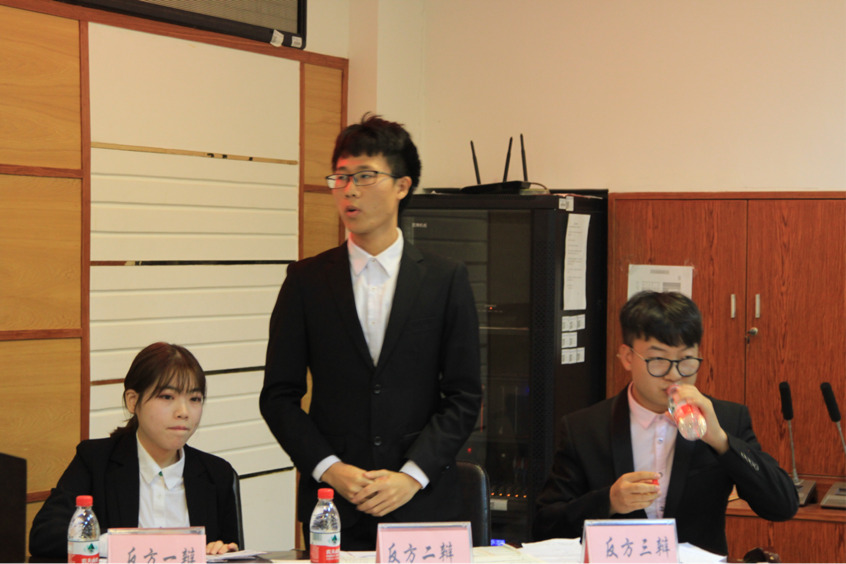 水利工程学院围绕“矛盾的统一性和斗争性”指出:竞争建立了主体与父母、同学、同事之间的关系。反方则围绕“合作是人类繁衍的基础,也是竞争的前提”来表明人际关系的基础是合作。攻辩阶段双方你来我往,非常激烈,不相上下。赛后,董艾辉老师进行了点评:她首先表扬了六位辩手,称赞他(她)们睿智、逻辑清晰、有风度,能够抓住自己有益的方面自圆其说,但双方存在举例不恰当的问题。并提到“竟合”概念,在人类共同体阶段,竞争与合作不可分开。