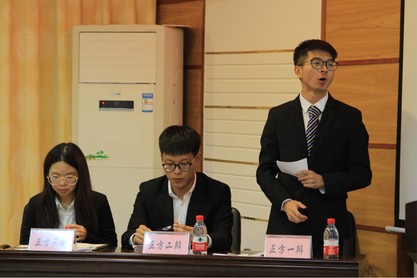 文法学院作为正方,从“生于忧患”的意识入手,旁征博引;反方不甘示弱,立论严谨。整个赛程既幽默又激动人心。赛后董艾辉老师做出精彩点评:成功=天赋+幸运+努力。双方辩手唇枪舌战,思路清晰,不相上下。任何事物都是矛盾双方构成的,辩论中不要硬是压倒对方。任何事物不是有非黑白,这是暴力思维,要找到自己的灰度。
