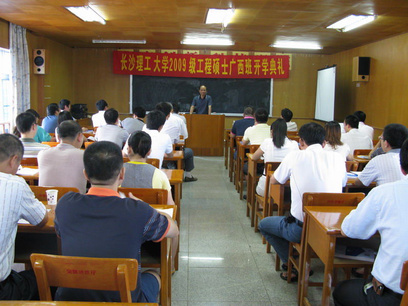 2009年7月5日上午MG冰球官网广西2009级工程硕士研究生班,在广西壮族自治区交通规划设计院会议室举行开学典礼。学校付宏渊副校长、研究生部卢毅主任、交通运输工程学院刘朝晖院长和查旭东副院长等出席典礼。