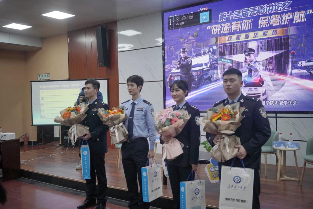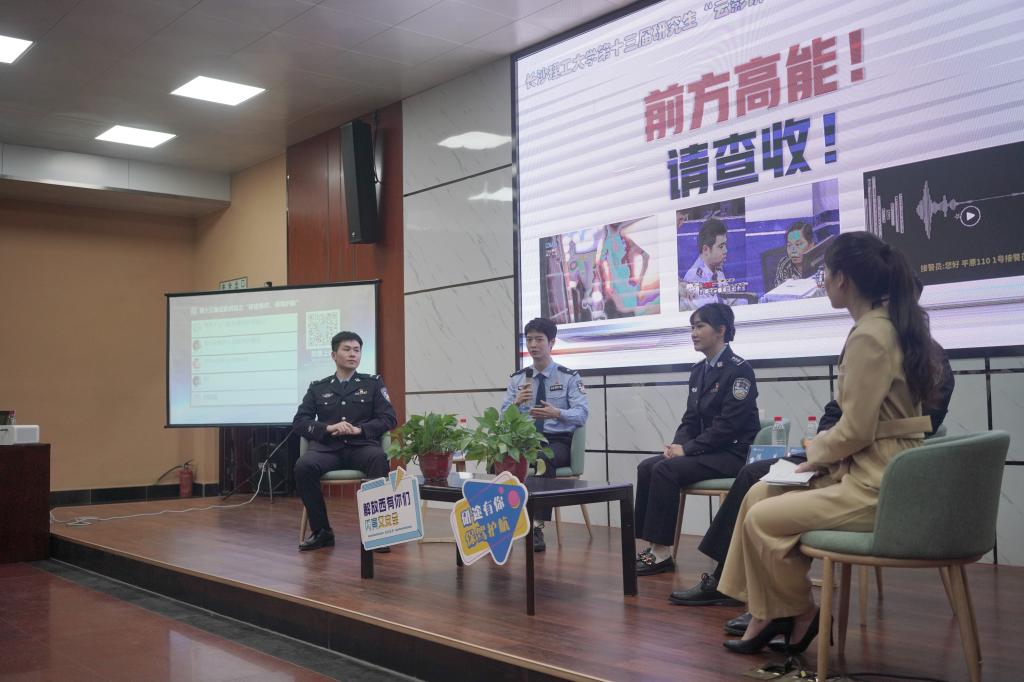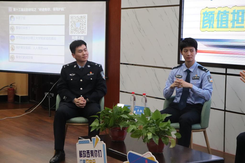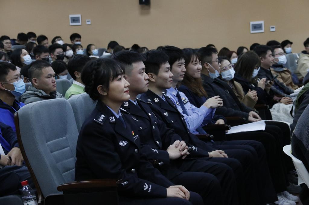 12月22日晚七点,《守护解放西》的“明星”警官及节目组应MG冰球突破官网校研究生团学组织的邀请做客云影讲坛,在金盆岭校区四教报告厅举行了一场“研途有你,保驾护航”主题讲座。来自长沙市坡子街派出所的陈慧、涂瀚文、欧阳睿乙、齐翔宇警官受邀出席,为现场200余名师生带来了一场别开生面的校园普法活动。