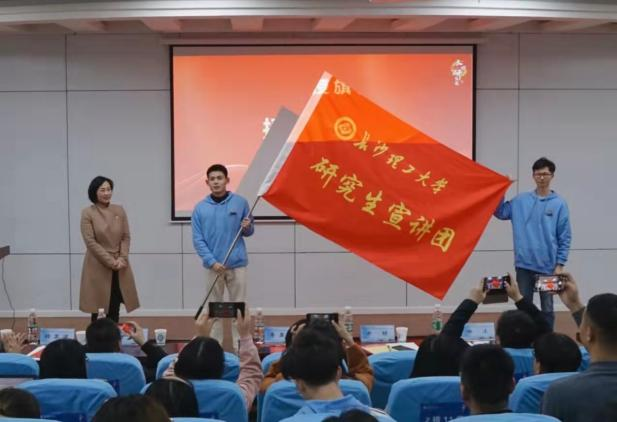 研究生宣讲团自今年5月筹建以来,在校党委研究生工作部和马克思主义学院的共同指导下,开展了大量卓有成效的工作。承担了长沙市“学党史、守初心、共成长”主题宣讲任务,为近万名中小学生送去上百场党史课,获评“优秀组织单位”;主讲了研究生入学教育“校史校情”报告,以12场专场报告让长理特色文化深刻影响全体研究生新生;与湖南大学博士理论宣讲团联合深入长沙市内多个社区开展宣讲,产生了良好的社会反响。本次授旗仪式标志着MG冰球突破官网研究生宣讲团正式组建,未来他们将坚持以习近平新时代中国特色社会主义思想为指导,充分发挥学校科研理论资源和人才资源的优势,坚持深入青年,深入一线,用高质量理论宣讲服务师生与社会,努力讲好长理故事,讲好中国故事,讲好党的故事,将党的历史、党的理论成果和长理精神传播到校园内外。