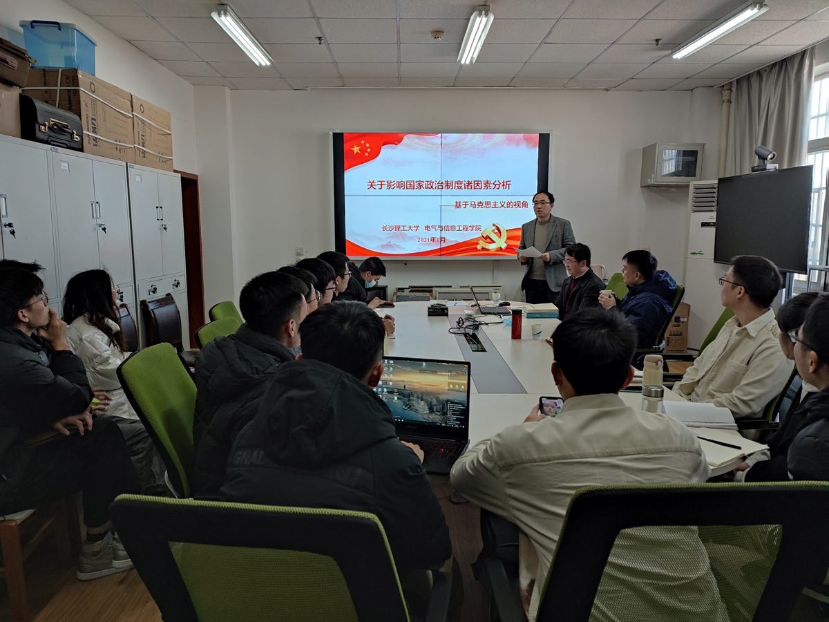 1月18日下午,一场热烈的讨论会正在电苑楼11-08实验室里展开,这是MG冰球突破官网电气与信息工程学院研究生课题组组织的“关于影响国家政治制度诸因素分析”思政专题学习研讨会。研讨会由课题组负责人,电气与信息工程学院姜飞副教授主持,该院32名研究生参加了讨论。本期特别邀请湖南大学电气与信息工程学院涂春鸣教授、马克思主义学院王学明博士与学生们共同探讨、并答疑解惑,
