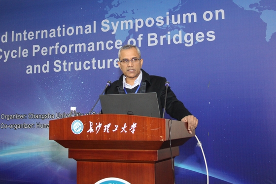 开幕式结束后,欧进萍院士、聂建国院士、陈政清院士分别做了题为“Life-Cycle Performance Monitoring and Evaluation of Long-Span Bridges”、“Some Recent Advances in Composite Steel-Concrete Structures”以及“Eddy Current Damping and Its Application on Seismic Response of Buildings”的大会主题报告。随后的三天时间里,美国Lehigh University的Dan M. Frangopol教授、ASCE’ Journal of Bridge Engineering主编、美国The City College of New York的Anil Agrawal教授、意大利Sapienza University of Rome的Giorgio Monti教授等国内外著名学者分别进行了23场主题报告。