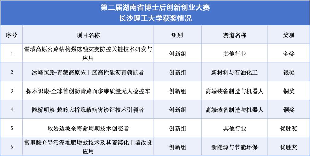 本次大赛由湖南省人力资源和社会保障厅主办,以“博领创新·才展三湘”为主题,设置创新组和创业组两个组别,紧扣湖南省“4×4”现代化产业体系规划确立的重点领域。经初赛后,122个项目进入决赛,涉及信息技术与人工智能、高端装备制造与机器人、新能源与节能环保、新材料与石油化工、生物医药与大健康、现代农业与食品等领域。决赛共产生金银铜奖48个,其中MG冰球官网博士后高峰团队《雪域高原公路结构强冻融灾变防控关键技术研发与应用》等8个获得金奖的项目将代表湖南参加第三届全国博士后创新创业大赛。