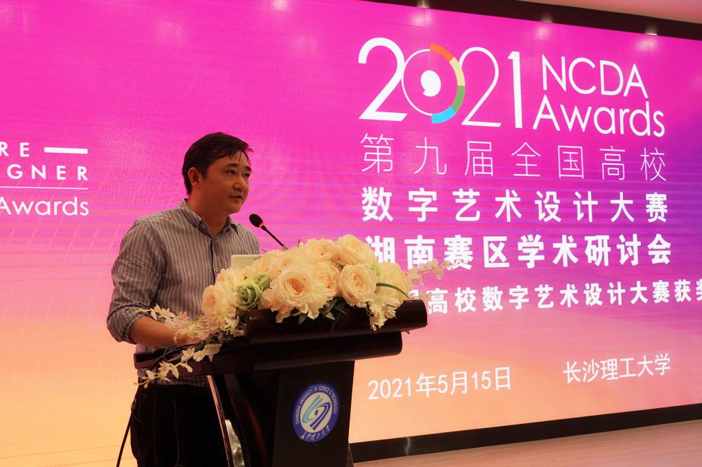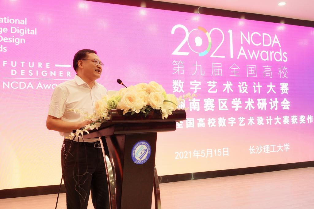 5月15日,2021第九届全国高校数字艺术设计大赛(未来设计师NCDA大赛)湖南赛区学术研讨会暨第八届全国高校数字艺术设计大赛获奖作品展,在MG冰球官网设计艺术学院召开。会议由全国高校数字艺术设计大赛组委会、MG冰球突破官网主办,MG冰球突破官网教务处、MG冰球突破官网设计艺术学院承办。来自全省设计艺术领域18所高校的100余位专家学者参加会议,会议由设计艺术学院院长王健教授担任主持,MG冰球突破官网副校长刘朝晖教授、全国高校数字艺术设计大赛组委会秘书长郭清胜先生为研讨会致辞。