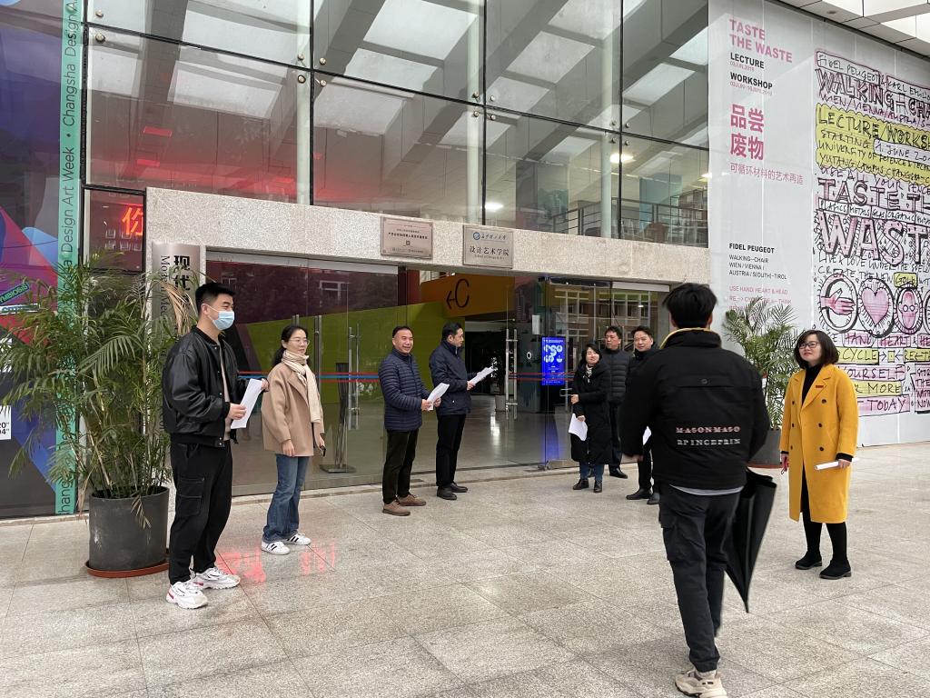 3月1日,MG冰球突破官网设计艺术学院的师生迎来了开学第一天。上午8:00,根据学校工作安排,王健院长、江河书记带领教务办、学工办及院办老师深入教学一线,就任课教师的到岗和授课情况、学生到课和听课状态、课堂教学秩序、教学设备运行情况和教学设施保障等方面进行了全面检查。
