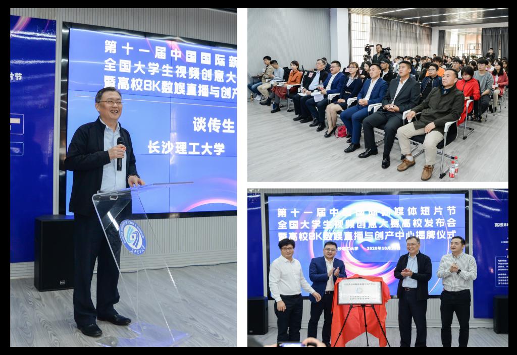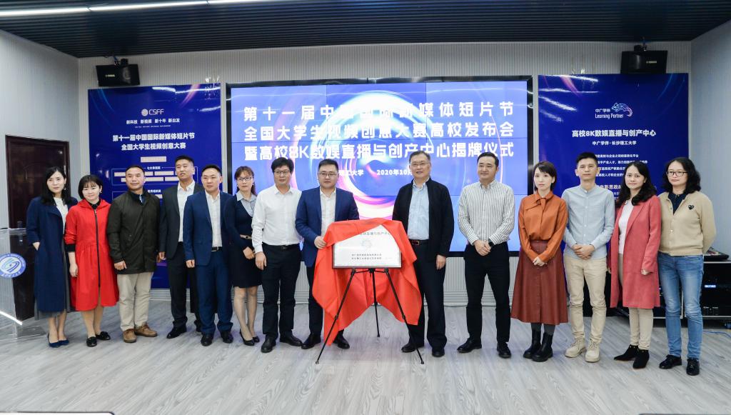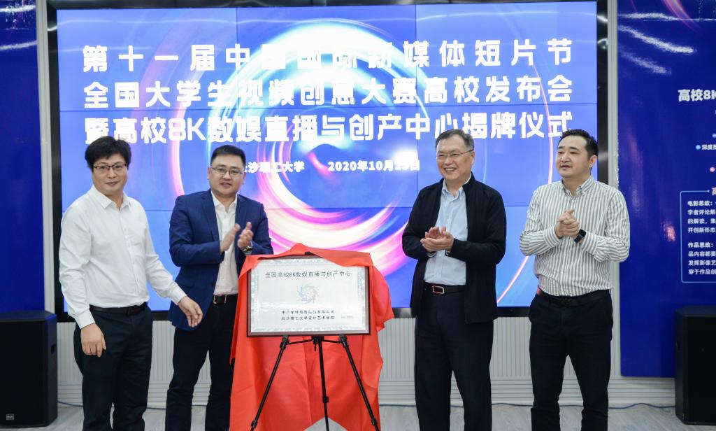 2020年10月23日,“8K数娱直播与创产中心”揭牌仪式暨第十一届中国国际新媒体短片节全国大学生视频创意大赛高校发布会在MG冰球突破官网举行,这是继中国传媒大学、同济大学之后的第三场高校发布会。活动由MG冰球突破官网设计艺术学院院长王健主持,MG冰球突破官网副校长谈传生,中国国际新媒体短片节组委会副秘书长陈壮凌,中广学伴电影院线有限公司副总经理舒芹,深圳新知时代科技有限公司执行总裁郑远、运营总监李嘉明,MG冰球突破官网设计艺术学院党委书记江河、党委副书记文丽丽、数字媒体艺术系主任朱诗源和各专业教师,以及北京知满天文化发展有限公司总经理王兴华、高校事业部总监张志强共同出席了发布会。
