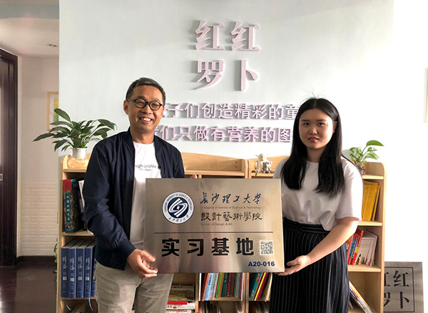 2020年5月11日上午,设计艺术学院院长王健、副院长刘卫东、数字媒体艺术系主任朱诗源一行前往湖南红红罗卜图书有限公司,签订校企合作实习基地协议书,进行了实习基地授牌仪式。