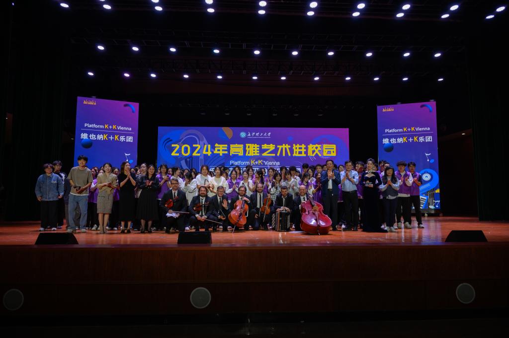 4月23日,我院承办的高雅艺术进校园维也纳音乐平台室内乐团(Platform K+K Vienna)音乐会在学校云塘校区大会堂成功举行。校党委书记付宏渊与全校师生一千六百余人共同欣赏此次音乐会。