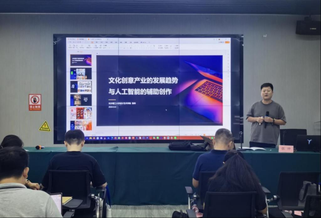 9月4日,张帅老师带来 《文化创意产业的发展趋势与人工智能的辅助创作》,剖析数字化背景下文创产业的发展方向与AI应用潜力。下午,带领学员前往马栏山文创园开展现场教学,实地参访企业并听取行业分享,直观感受文化创意与数字技术融合的最新成果。