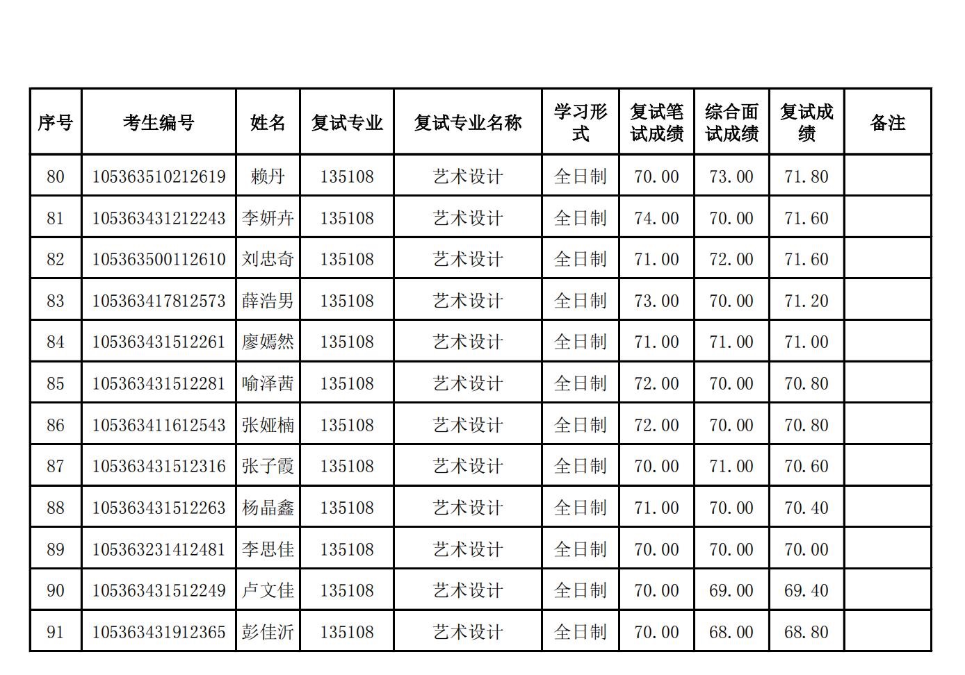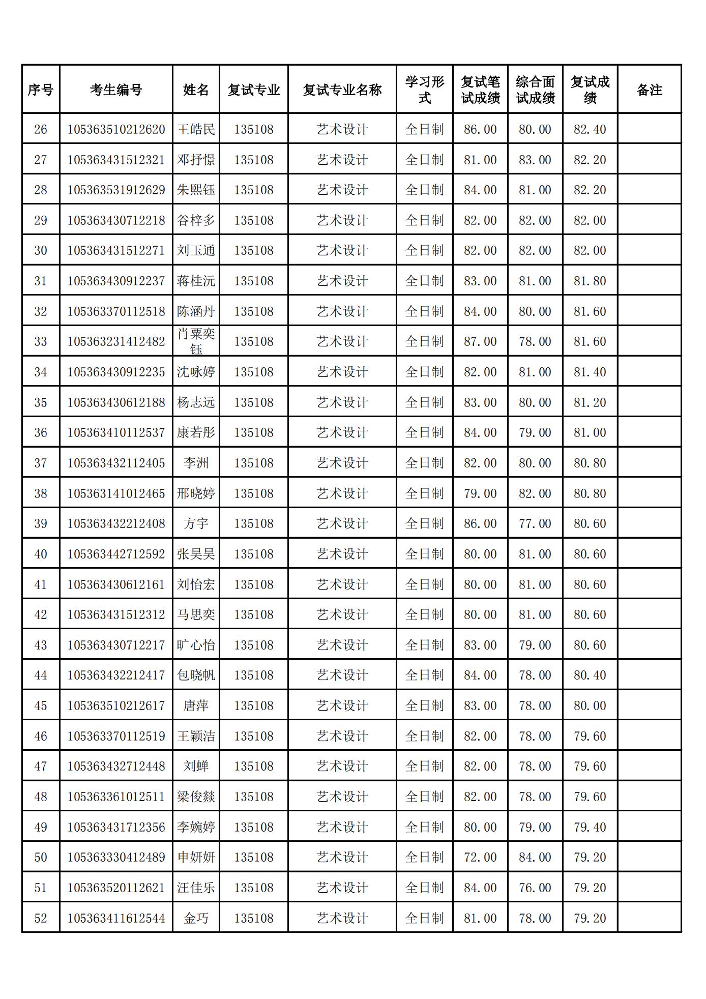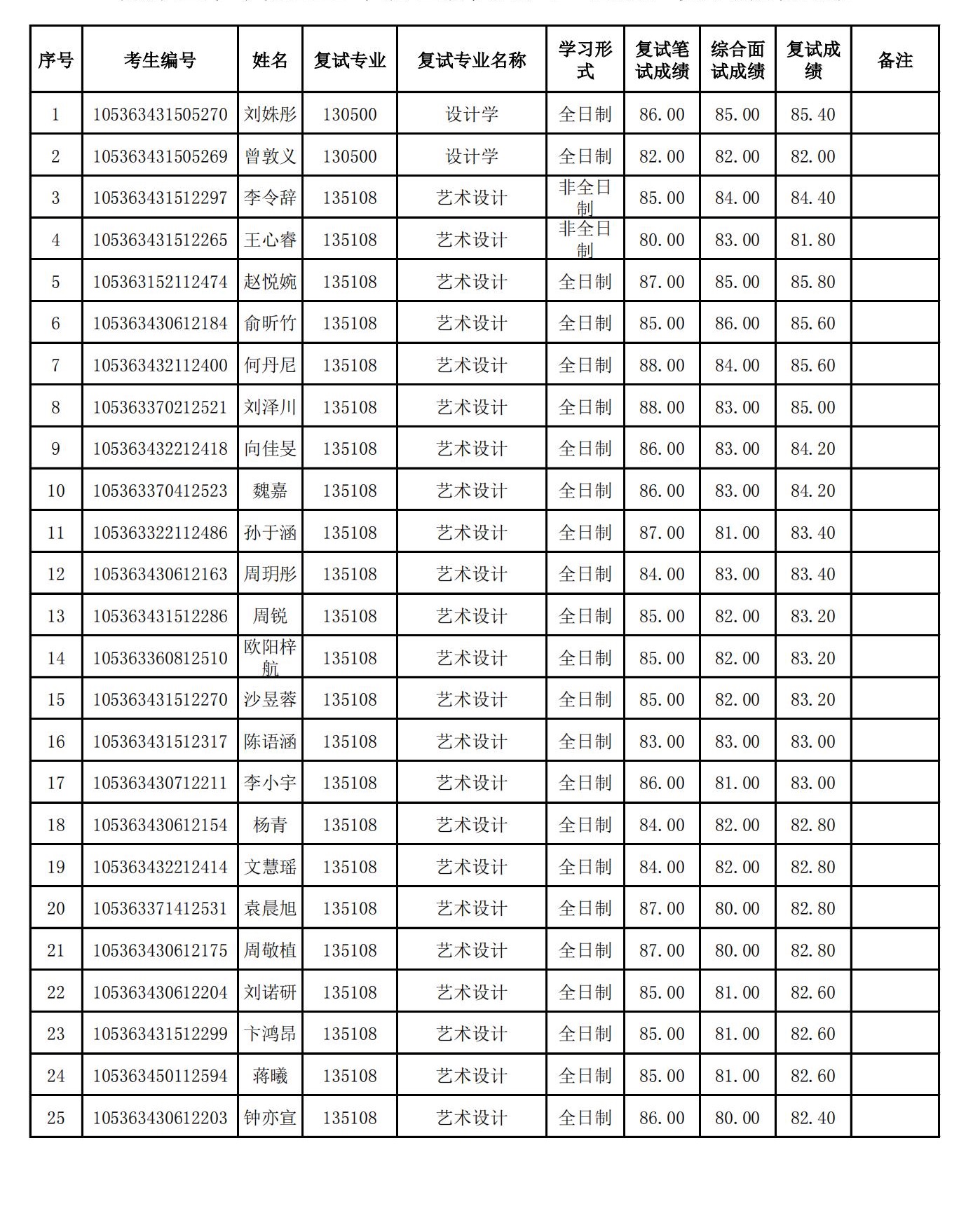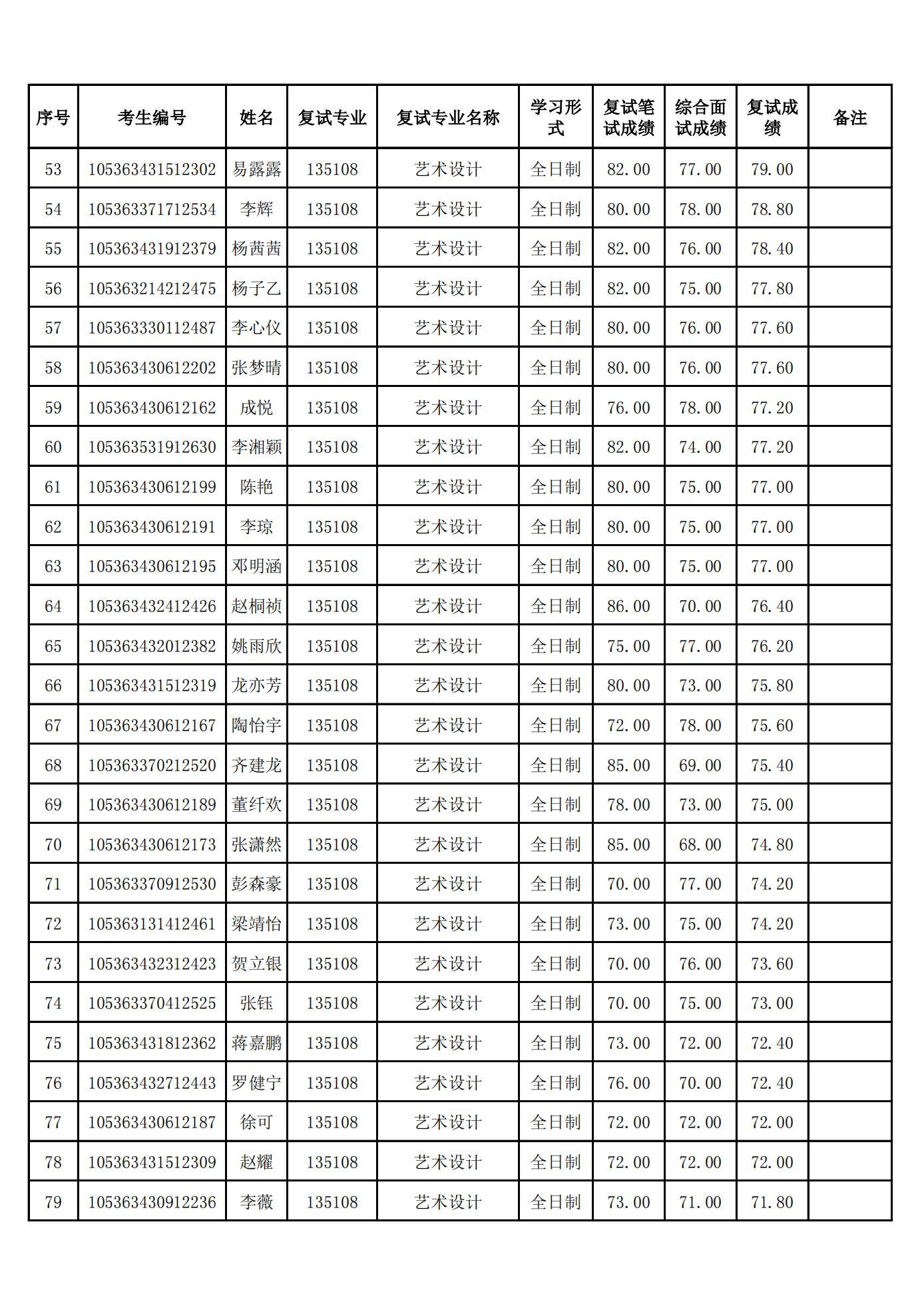 设计艺术学院2023年硕士研究生硕士研究生(一志愿)复试结果公示