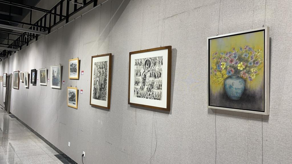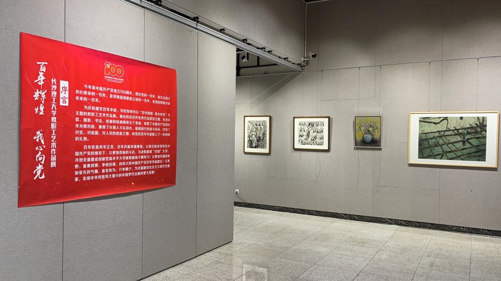 7月6日,值中国共产党成立100周年之际,MG冰球突破官网“百年辉煌 我心向党”首届教职工艺术作品展在云塘校区艺术楼二楼展厅开展,向党的百年华诞献礼。